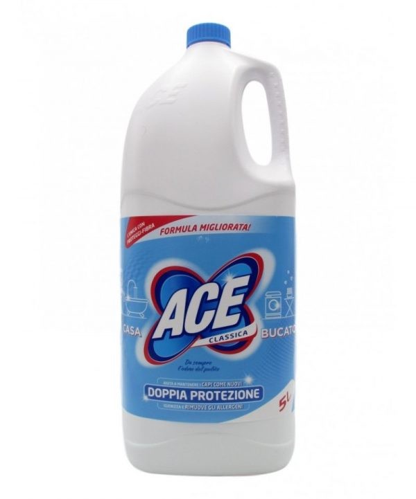 ACE DETERGENTE IGIENIZZANTE è LA SOLUZIONE IDEALE PER UNA PULIZIA PROFONDA E COMPLETA DELLA CASA E DEL BUCATO. LA SUA FORMULA A BASE DI IPOCLORITO DI SODIO ASSICURA UN’AZIONE IGIENIZZANTE EFFICACE CONTRO GERMI, BATTERI E ALLERGENI.