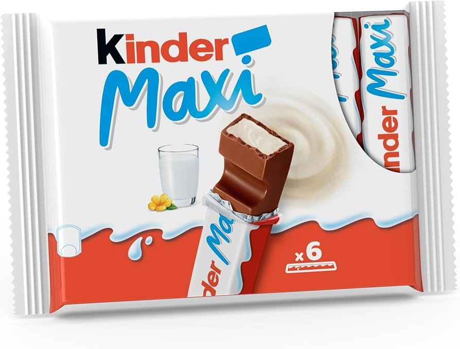 FERRERO KINDER MAXI è LA VERSIONE PIù GRANDE DELLA CLASSICA BARRETTA KINDER CIOCCOLATO, PENSATA PER OFFRIRE UN MOMENTO DI DOLCE PIACERE CON TUTTO IL GUSTO DEL CIOCCOLATO AL LATTE E LA CREMOSITà DEL RIPIENO AL LATTE.