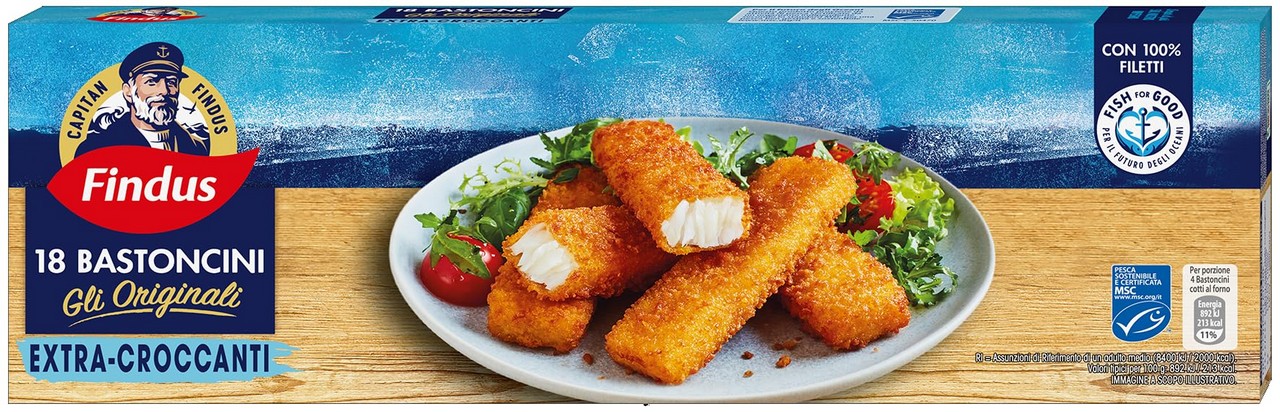 FINDUS BASTONCINI 18 PEZZI SONO UN PRODOTTO SURGELATO PRATICO E GUSTOSO, PENSATO PER CHI DESIDERA COMODITà E QUALITà DEL PESCE IN FAMIGLIA.