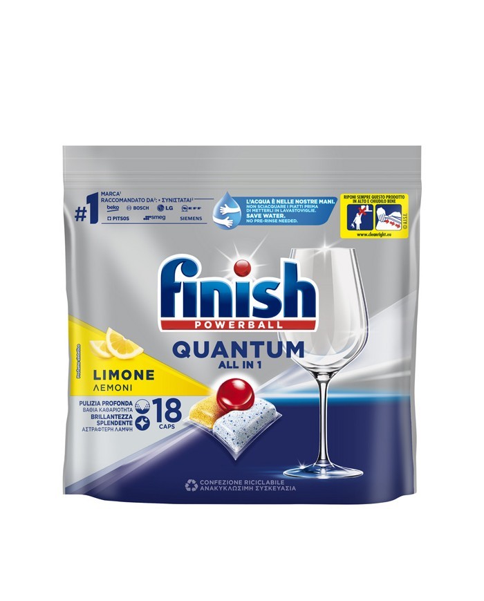 FINISH QUANTUM LIMONE LAVASTOVIGLIE 18 CAPS è LA SOLUZIONE PERFETTA PER CHI CERCA UN DETERGENTE ALTAMENTE EFFICACE E PRATICO PER LA PROPRIA LAVASTOVIGLIE.