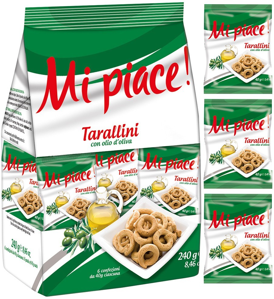 MI PIACE! TARALLINI CON OLIO DI OLIVA 6 BUSTE 240GR SONO UNO SNACK CROCCANTE E SFIZIOSO, PERFETTO PER OGNI OCCASIONE.