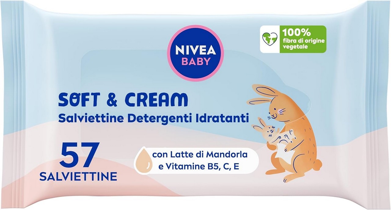 NIVEA BABY SOFT &amp CREAM SALVIETTINE UMIDIFICATE DETERGENTI IDRATANTI 57 PEZZI
