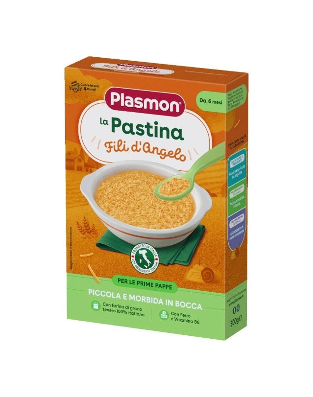 PLASMON PASTINA FILI D’ANGELO 300GR è una pastina sottile e delicata, pensata per i primi pasti dei bambini, ideale durante lo svezzamento.