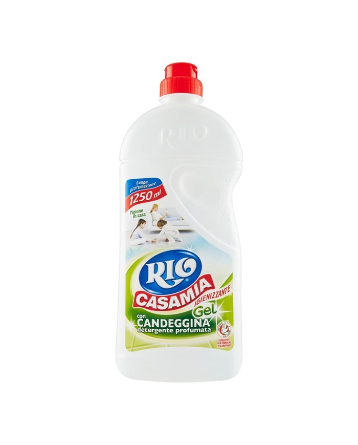 RIO CASAMIA DETERGENTE CON CANDEGGINA GEL LT1,25 è un detergente multiuso gel profumato e igienizzante pensato per la pulizia quotidiana di pavimenti e superfici dure in tutta la casa.