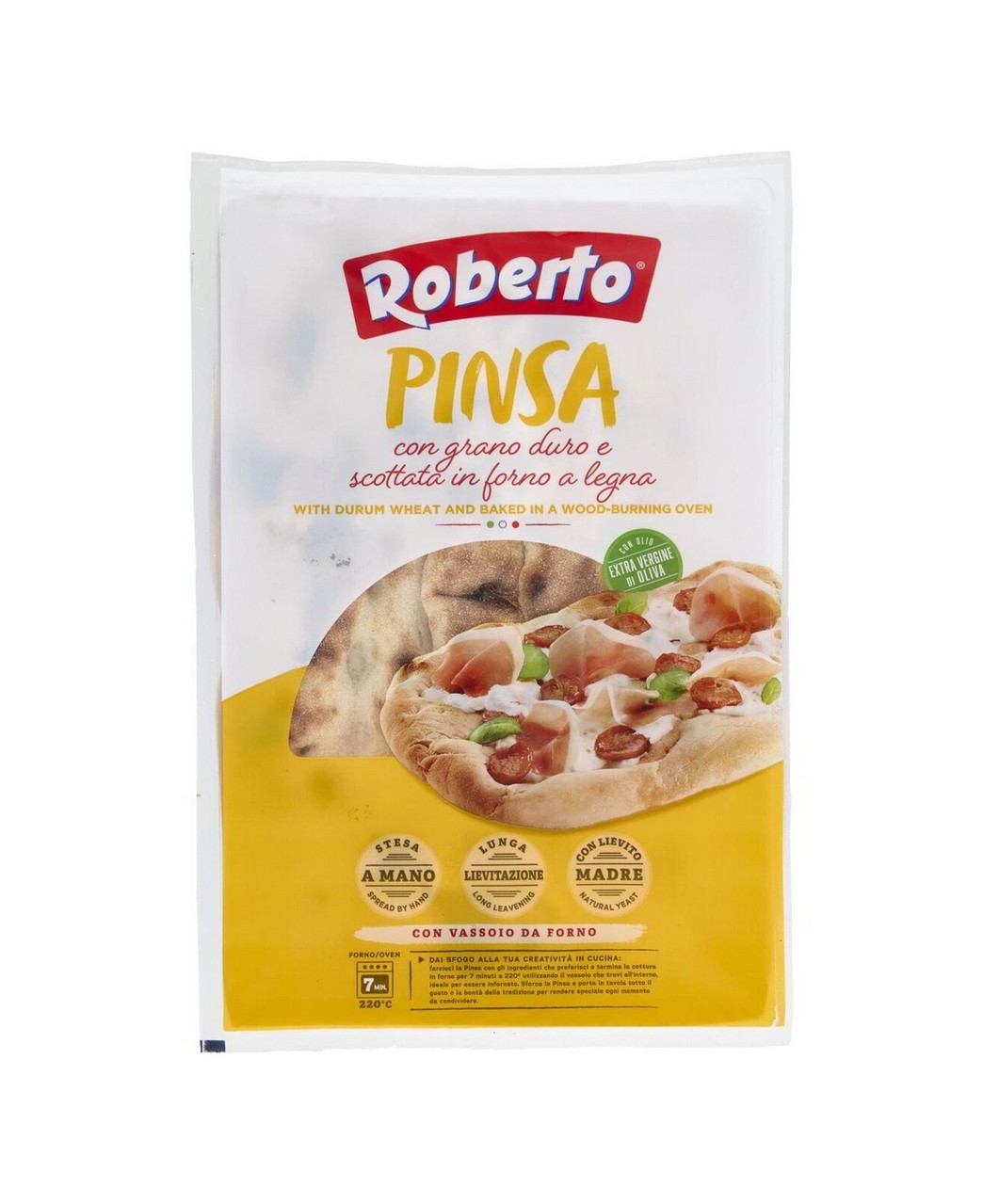 ROBERTO PINSA CON GRANO DURO è L’AUTENTICA ESPERIENZA DELLA TRADIZIONE ITALIANA. PREPARATA CON FARINA DI GRANO DURO E SCOTTATA IN FORNO A LEGNA, QUESTA PIINSA DA 230 G UNISCE FRAGRANZA, LEGGEREZZA E GUSTO UNICO.