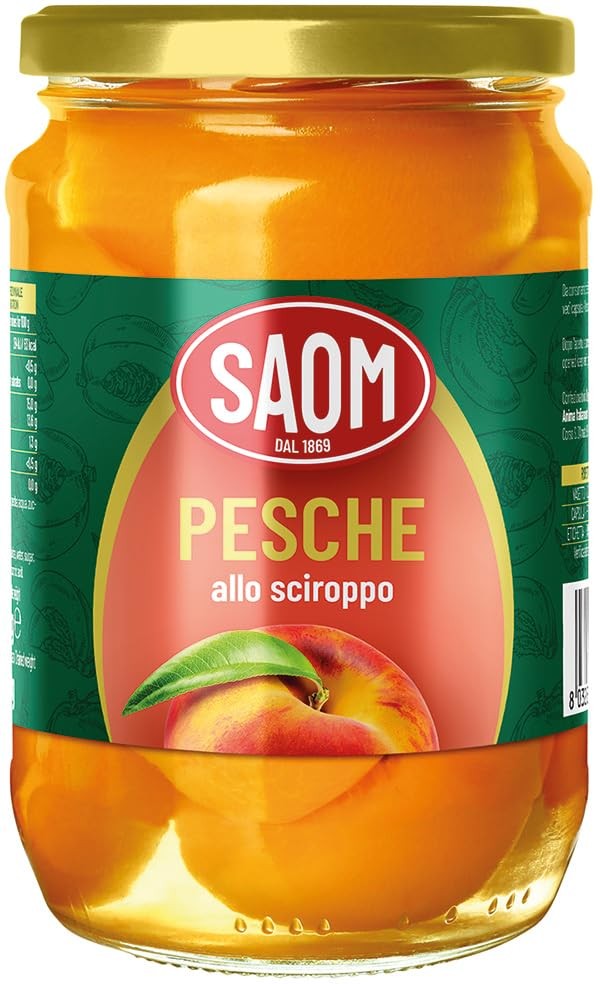 SAOM PESCHE SCIROPPATE IN VETRO 700GR è L’ IDEALE PER COLAZIONI, DESSERT, MERENDE O COME INGREDIENTE PER DOLCI FATTI IN CASA, QUESTE PESCHE SCIROPPATE PORTANO IN TAVOLA GUSTO E PRATICITà IN OGNI OCCASIONE.