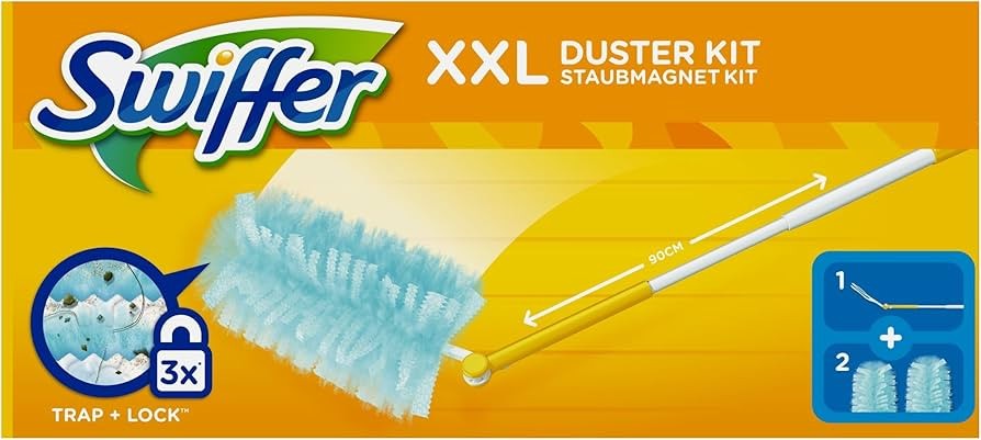 Swiffer XXL Duster Starter Kit + 2 Piumini è l’alleato perfetto per una pulizia rapida, completa ed efficace, senza fatica e senza attrezzi aggiuntivi. Un modo semplice per mantenere la tua casa libera da polvere e allergeni!