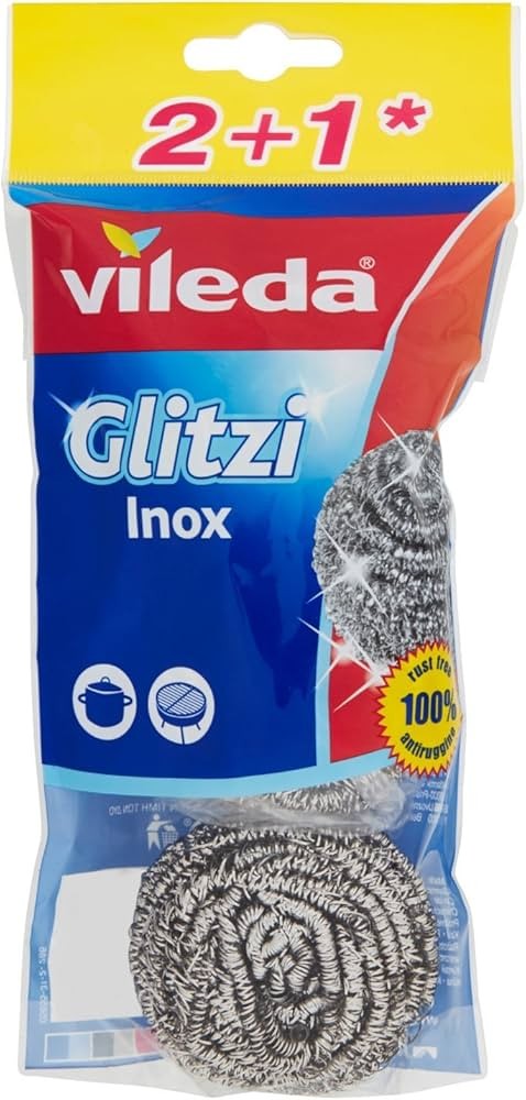 Le Vileda Glitzi Inox Pagliette a Spirale sono disponibili in confezioni da 2 + 1 Pezzi, una soluzione pratica ed economica per chi cerca pagliette resistenti e efficaci per la pulizia di superfici dure. Se desideri una pulizia potente e duratura, queste pagliette sono la scelta ideale per te!