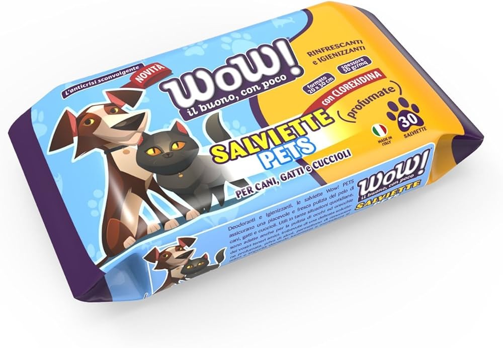 Le Wow Salviette Pets con Clorexidina sono la soluzione pratica e veloce per garantire igiene e freschezza al tuo amico a quattro zampe, ogni giorno e in qualsiasi situazione.